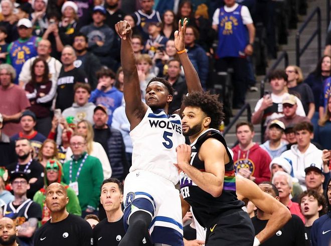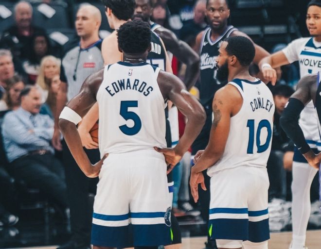 拿到西部六号种子的概率为33%,这已经很高了。自然,西部第三的位置会成为香饽饽。回到森林狼身上,本赛季球队攻防效率都是联盟第九,净效率值+4.5联盟第七。作为球队核心的爱德华兹,本赛季场均29.7分5.2篮板3.7助攻,在他身上有一组数据特别有趣:当球队赢球时,对应爱德华兹数据是:场均27.8分4.6篮板3.9助攻,球权占有率30.3%;反之则是场均32.8分6.3篮板3.4助攻,球权占有率33.9%。甚至说当他效率越高时,球队反而难赢球。再放大一点,森林狼本赛季阵容整体竞争力,绝对是争冠级别。